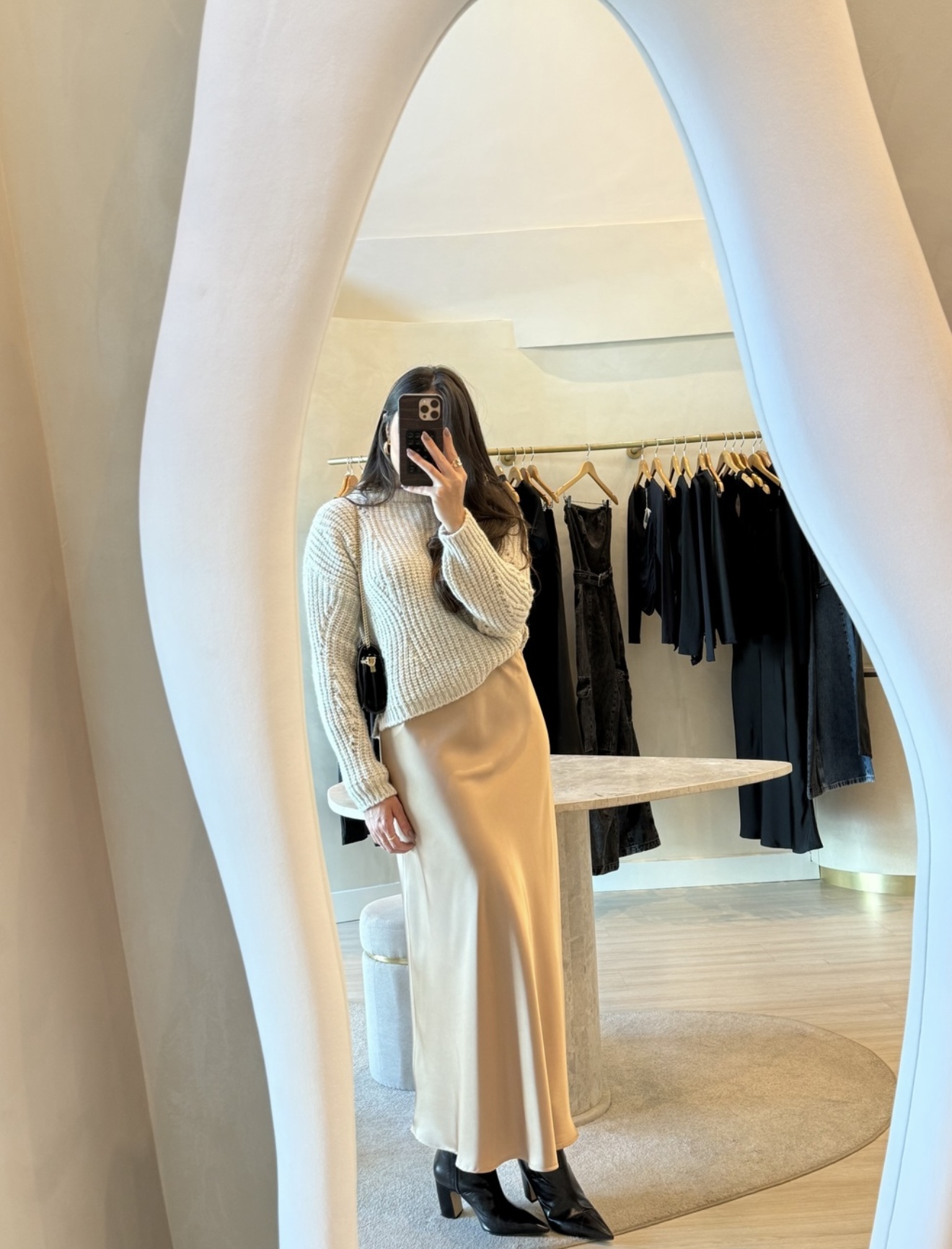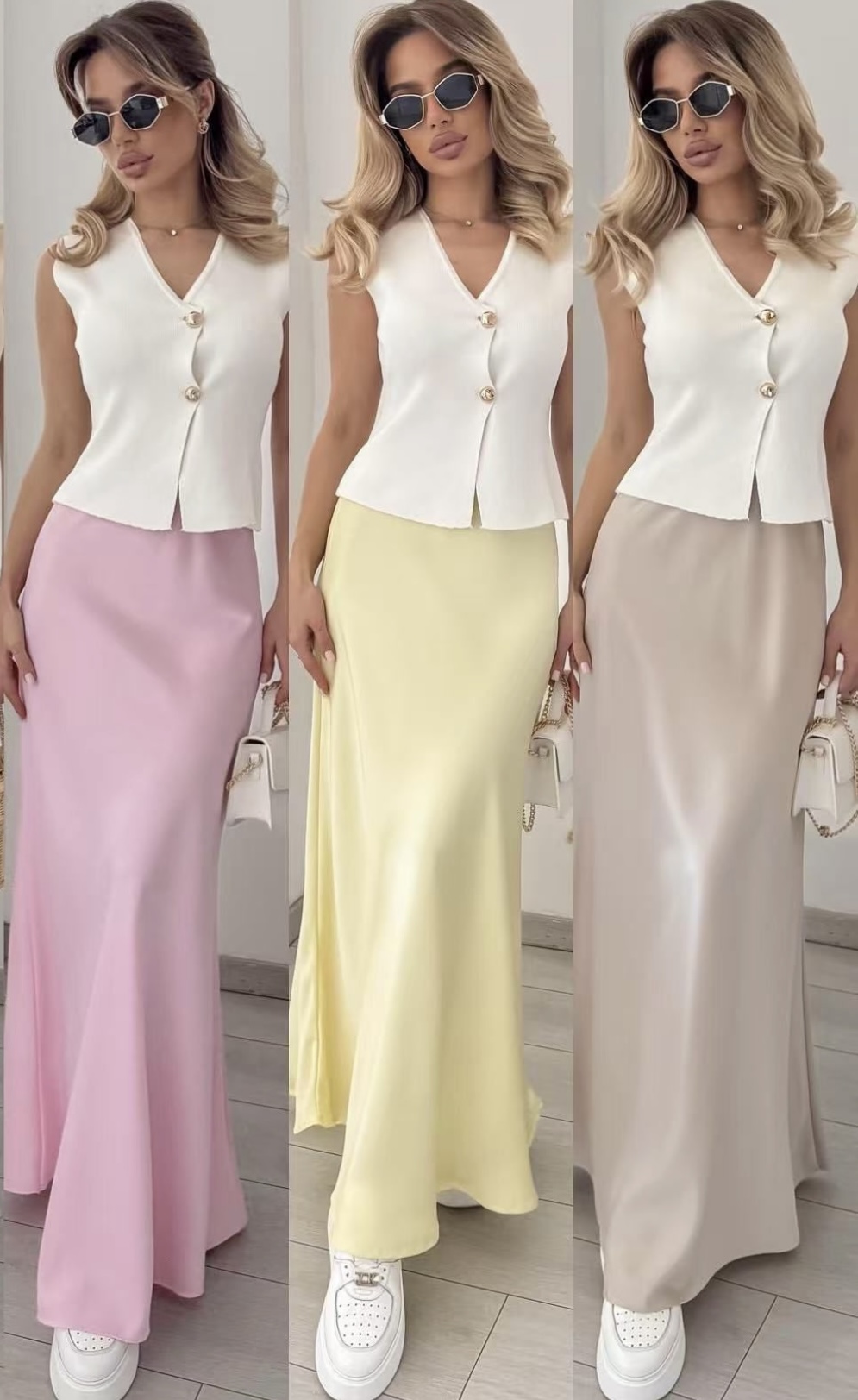Perfeita para diversas ocasiões, essa saia traz o brilho suave do cetim, criando um look feminino e moderno.