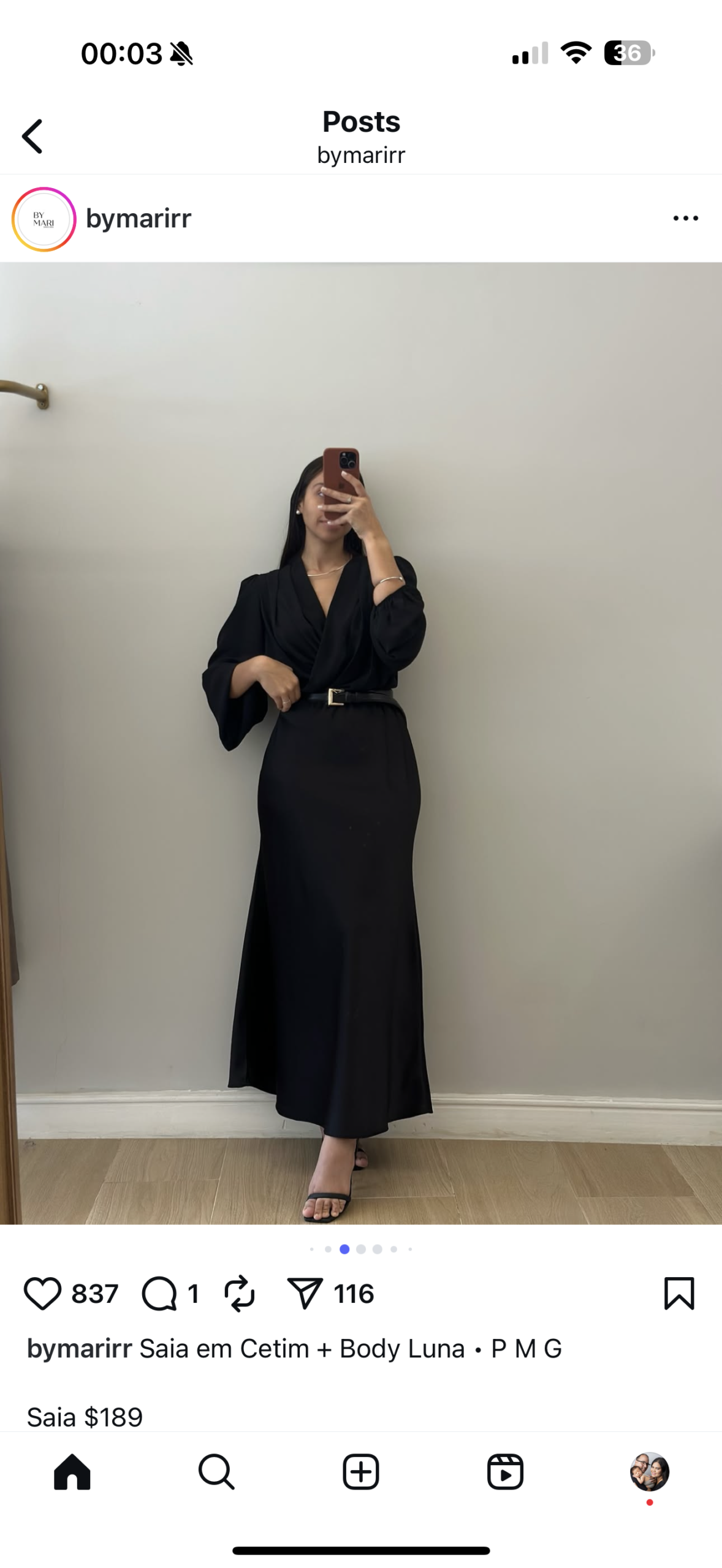 Confeccionada em crepe acetinado.